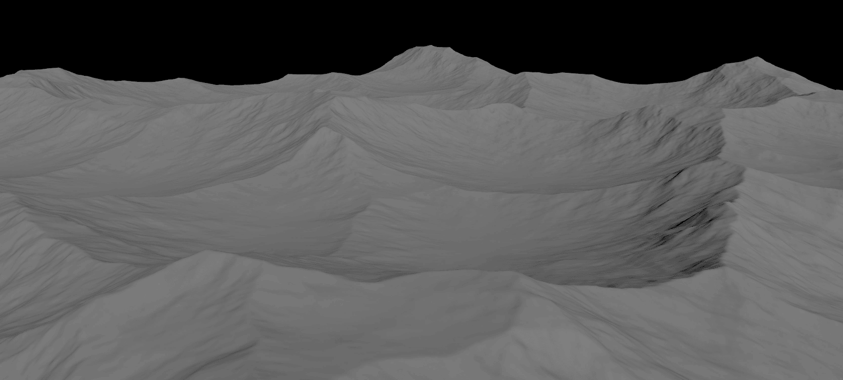 The goal was to get some nice ridges that I could use for the environment. I didn't need much detail in this one, since the grass was going to cover the entire landscape (in the end the ground was rendered with a pure-diffuse material).