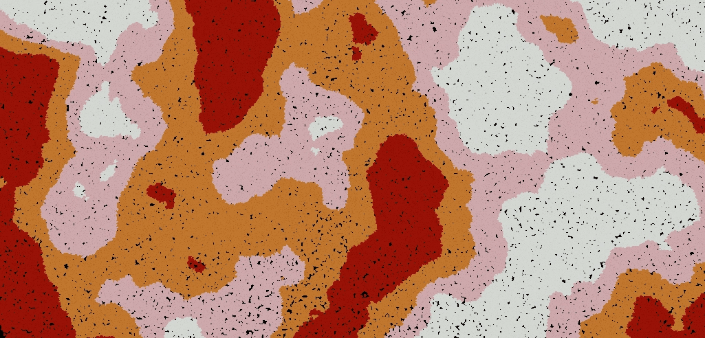 By adding a random value here, I can create that a "noisy" transition that gives some variation between the blends of colors.