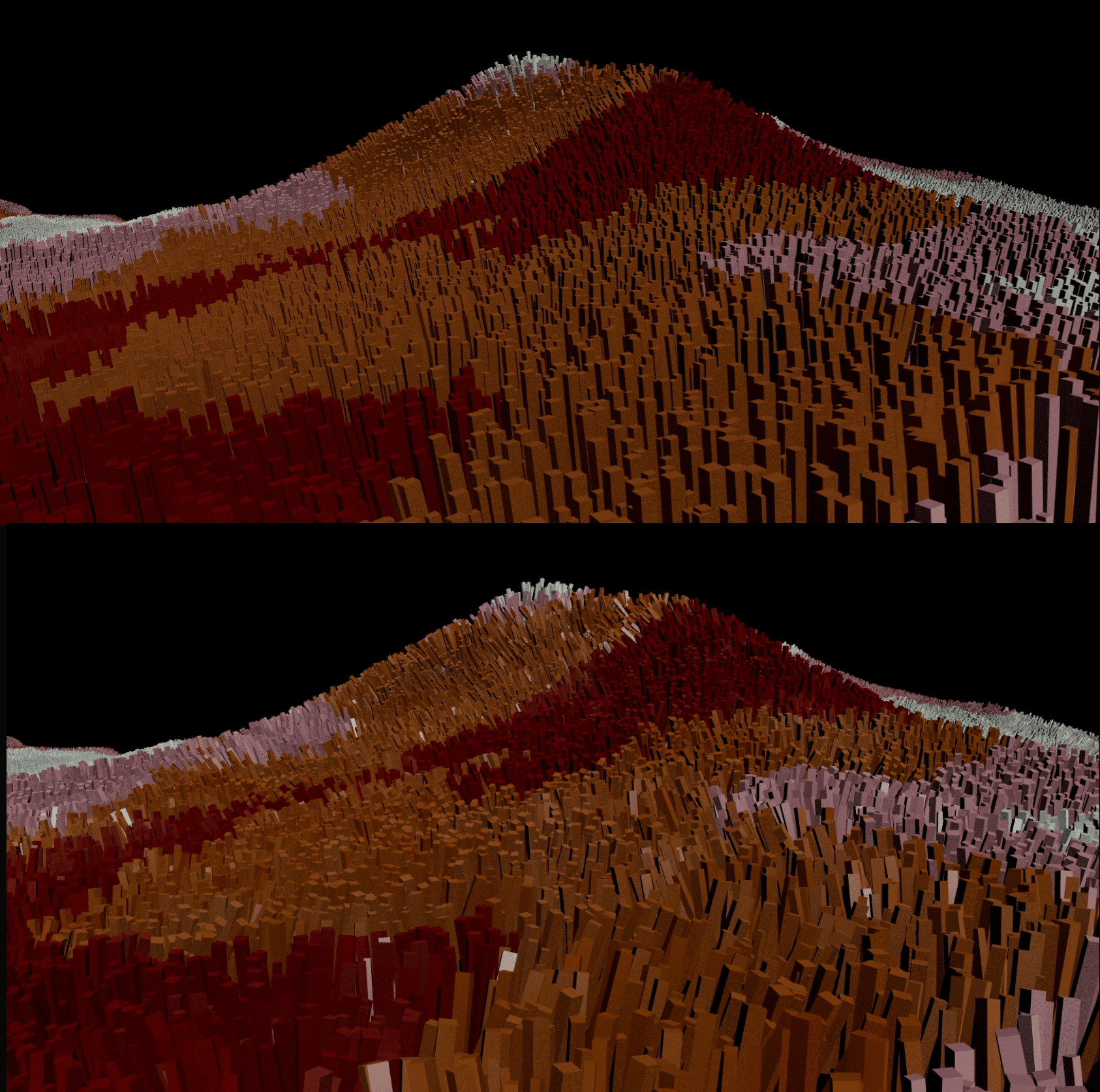 I could have removed the points that weren't seen by the final camera (points on the backfaces of the ridges) but since I wasn't worried about optimizing it too much I didn't worry about this.